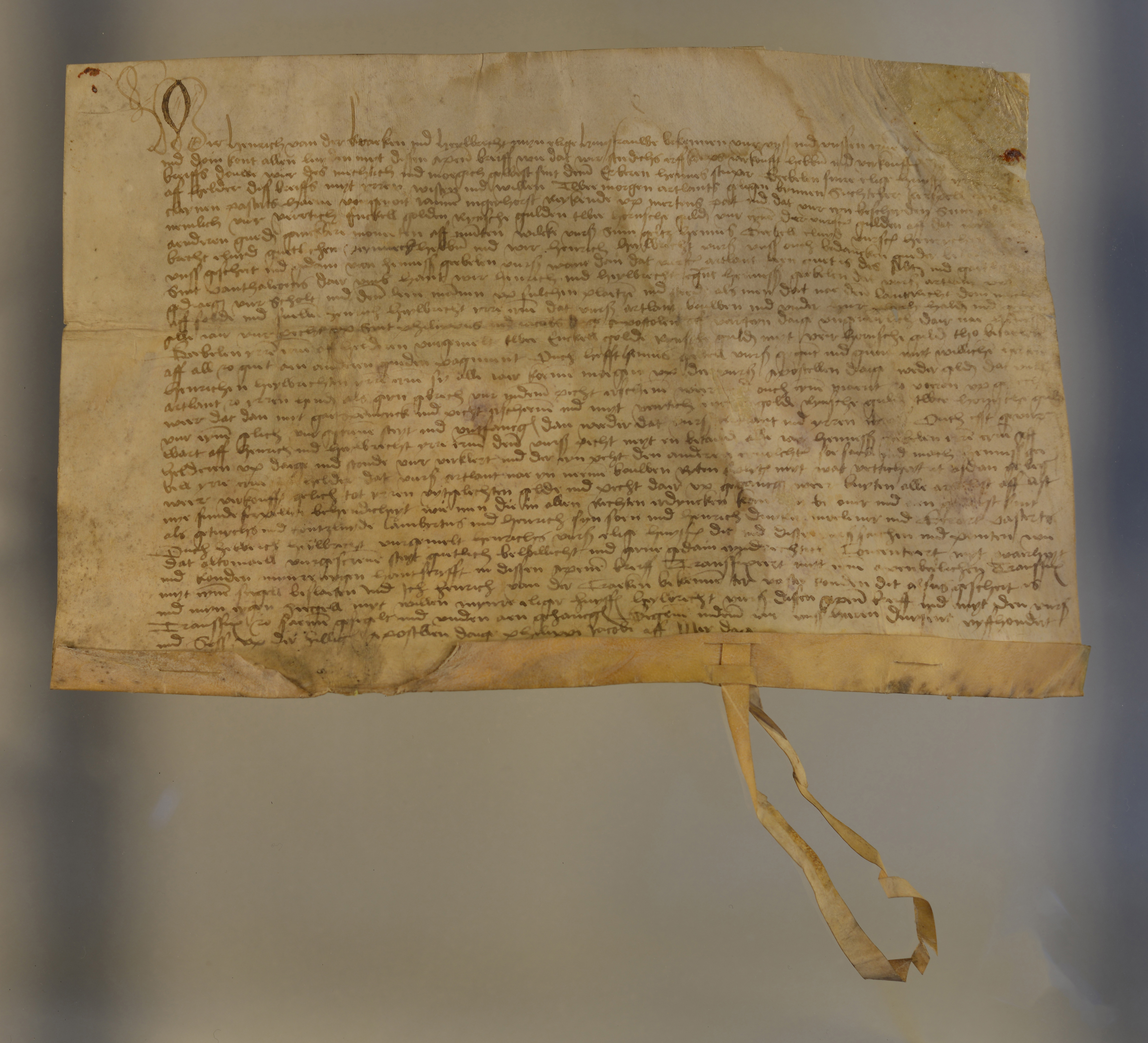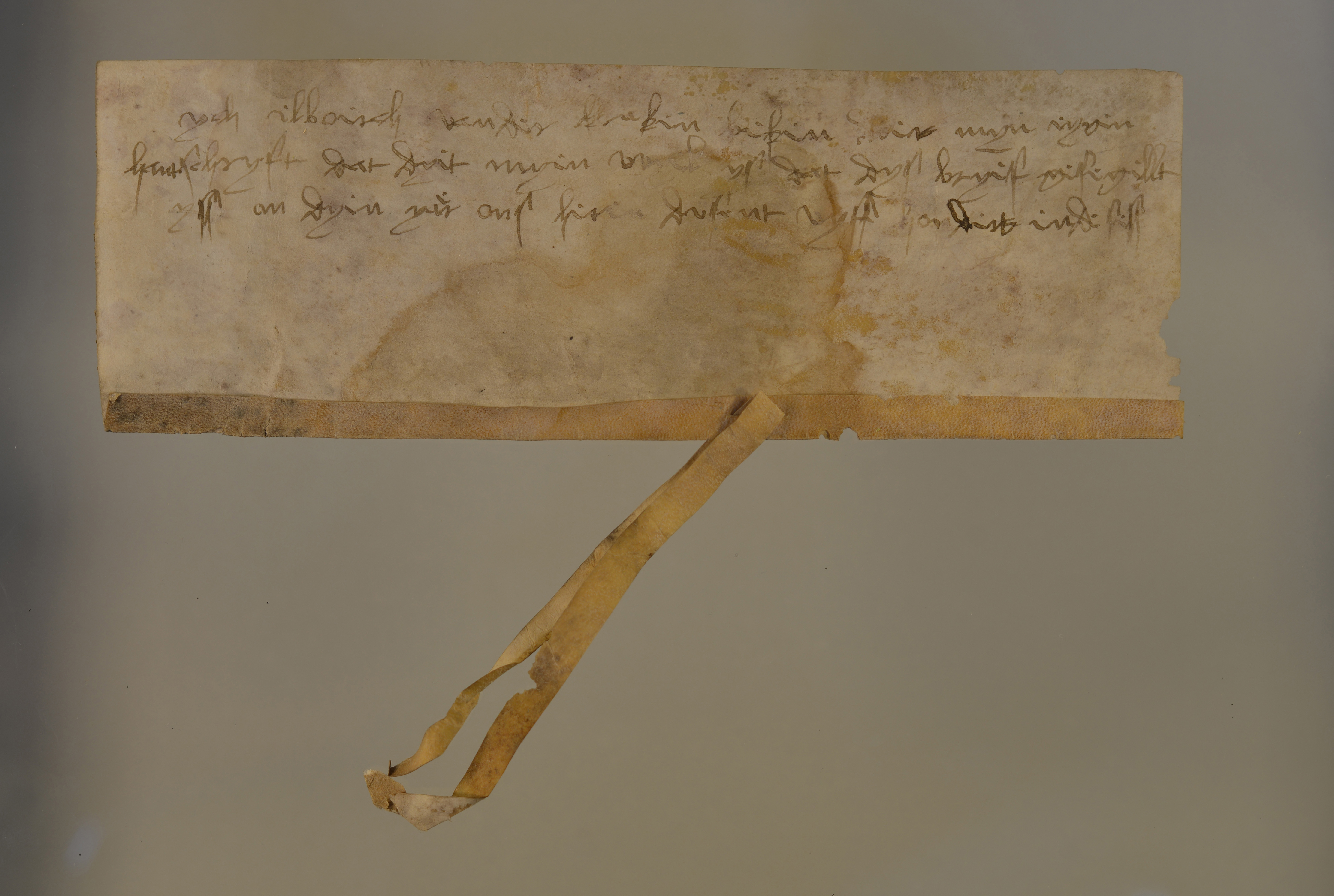 Heilbrecht, Transfix (Höhe 6,4, Breite: 18,3) mit Siegelschnitt und anhängendem Pergamentband, Plica, drei Siegelschnitte, ein Pergamentstreifen hängt am mittleren Siegelschnitt, Siegel fehlen Heinrich van der Kraeken |