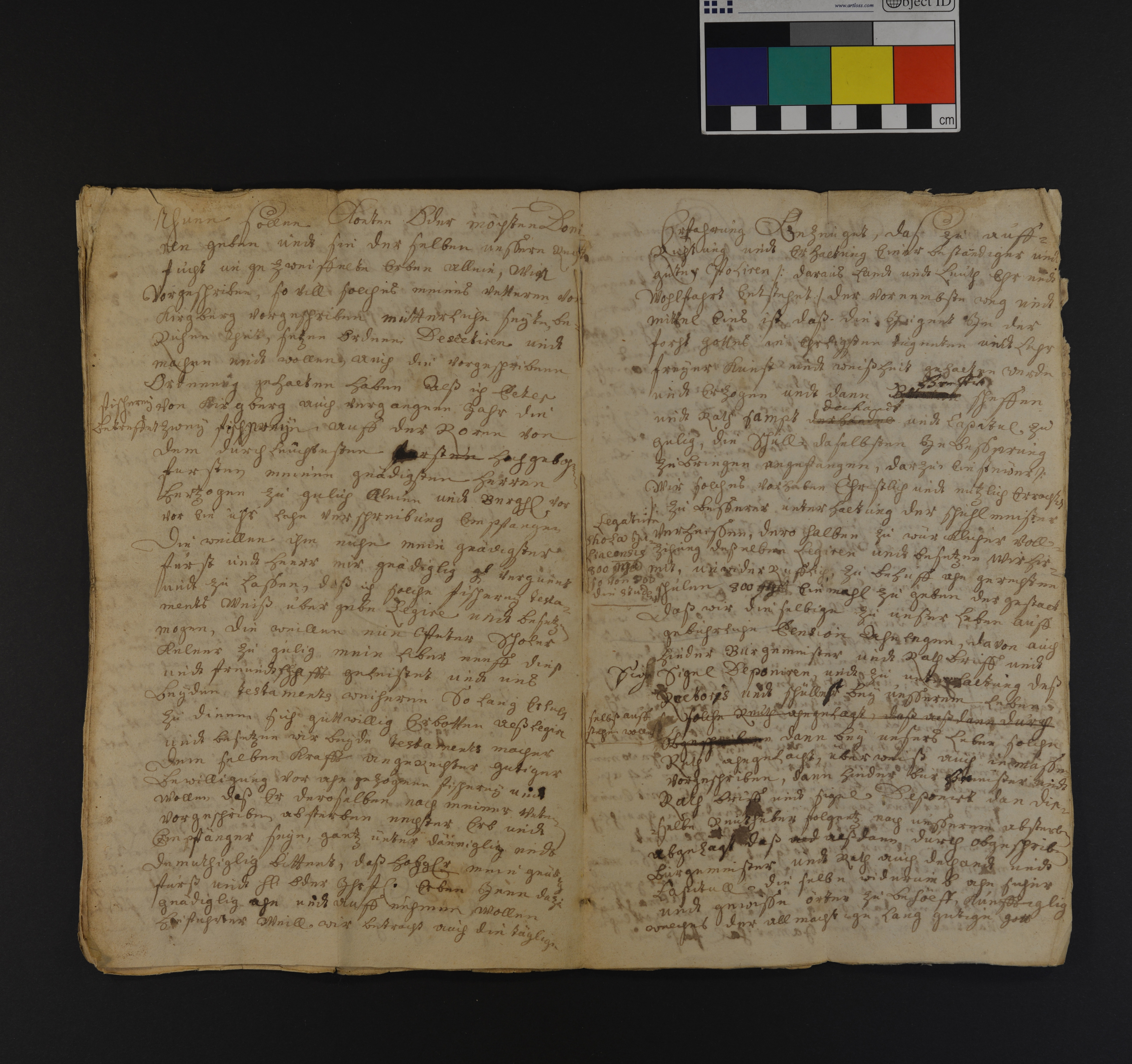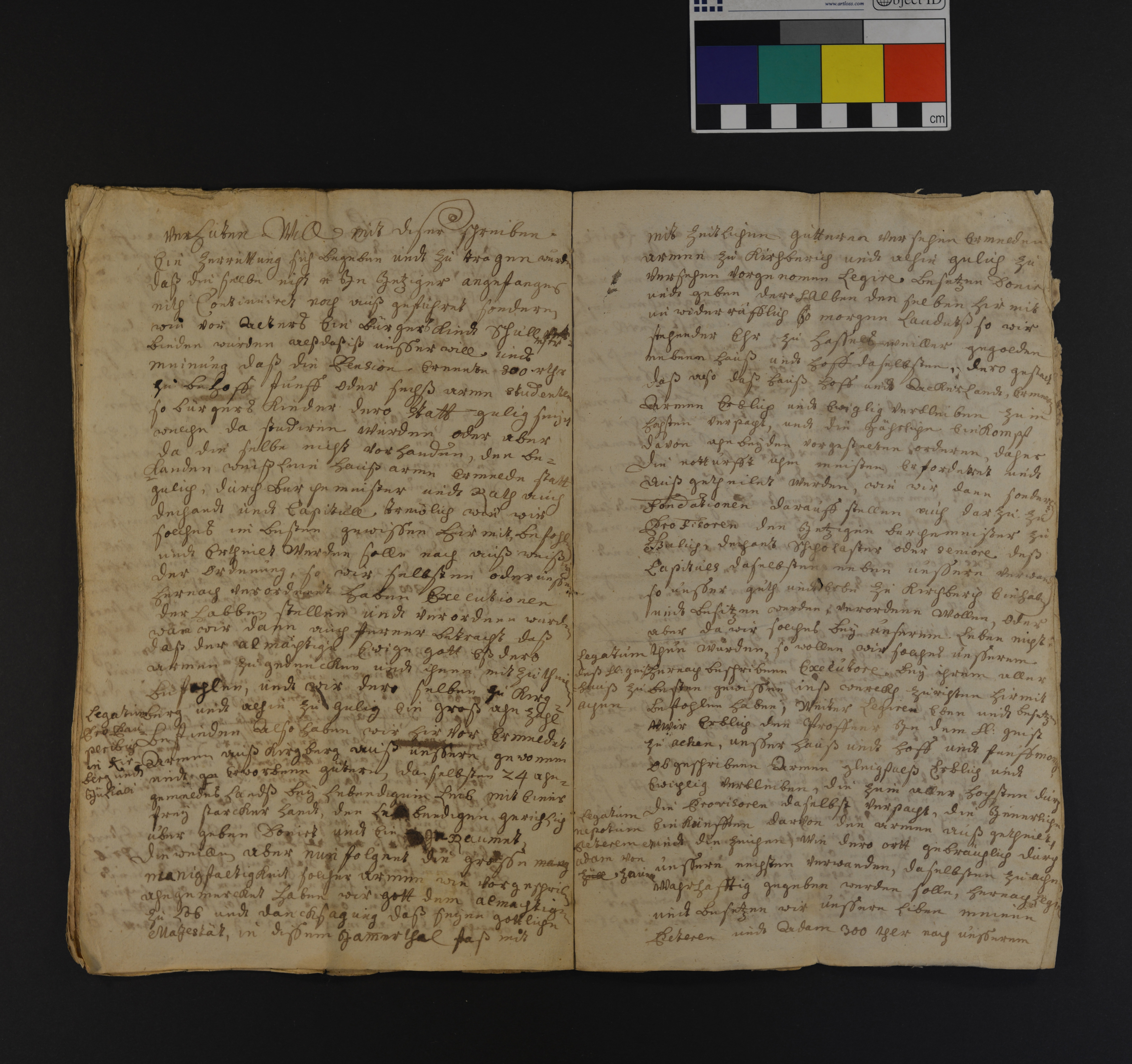 | Peter von Kirberich, Vogt im Amte Jülich, und seine Gattin Christina von Stommel vermachen in einem Testament dem Kurfürsten von Köln wegen des Dombaus einen Dornisch, den Erben von mütterlicher Seite Peters von Kirberich Goddart Scholer von Weiler, Vetter Wilhelm Thewess Guetgen und Philipp Mei, genannt Streithagen, sowie Dederich Hillessberg und Margareta Mei die gesamten mütterlichen Güter Peters von Kirberich, Kellner zu Gulig, zwei Fischereien auf der Rur, der neugegründeten Particularschule zu Gulig 800 Reichstaler, den Armen zu Kirchberg und Jülich 60 Morgen Land bei Hasselsweiler, den Provisoren des Heilig-Geist-Hauses zu Aachen unsser Hauss und Hoff und funff Morgen, Peter und Adam Zauell 300 Taler, Frantz Scholler und Leonard 300 Taler, Paulus Herll 300 Taler, setzen zu Testamentsvollstreckern Peter von Zeull und Paulus Herrl ein und lassen vom Notar Frantz Khamiss ein oder mehrere Notariatsinstrumente darüber aufstellen. |
