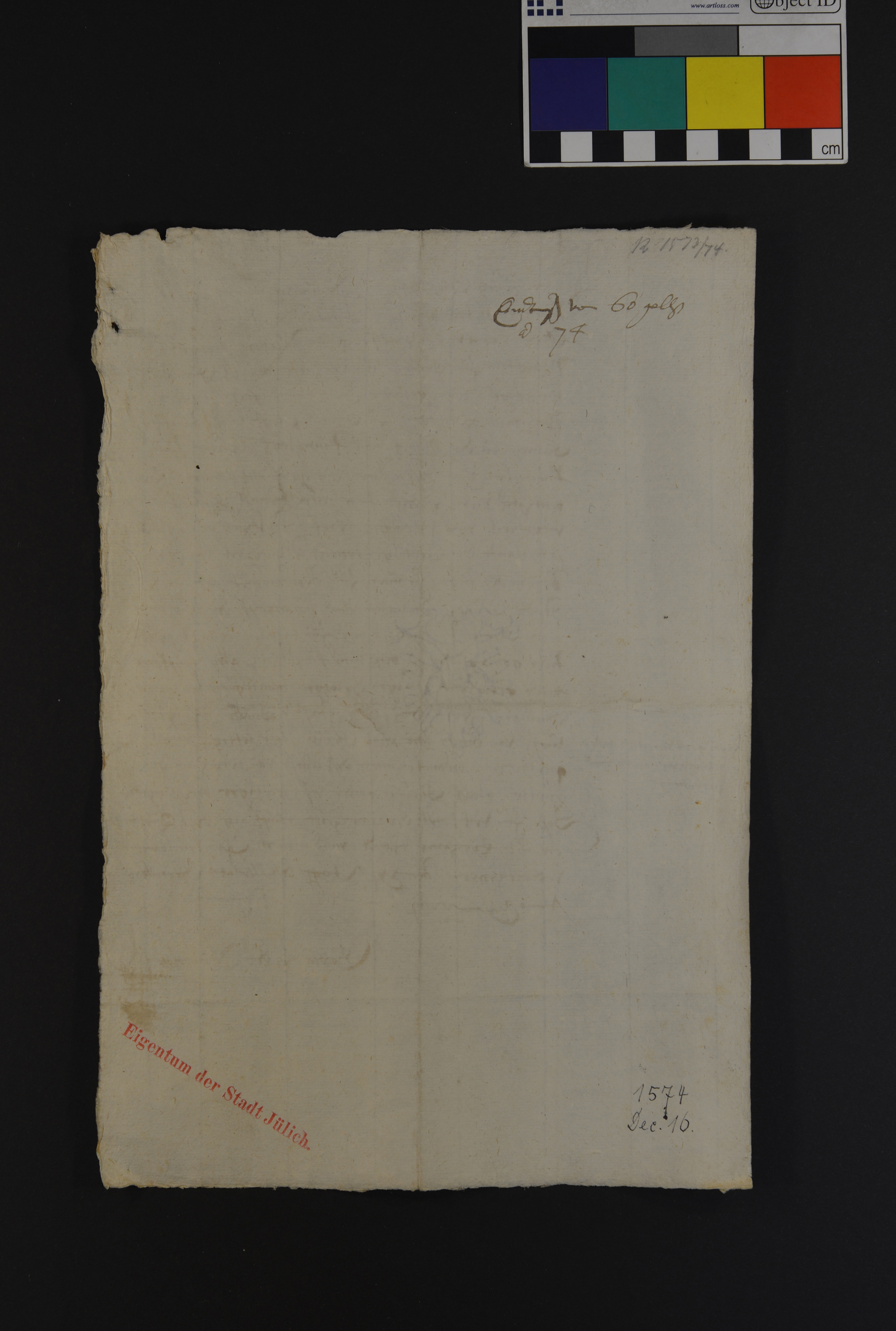 U /35 - Zahlung der Witwe Margarethe van dem Bongard an die Stadt Jülich - 1574 Dezember 16