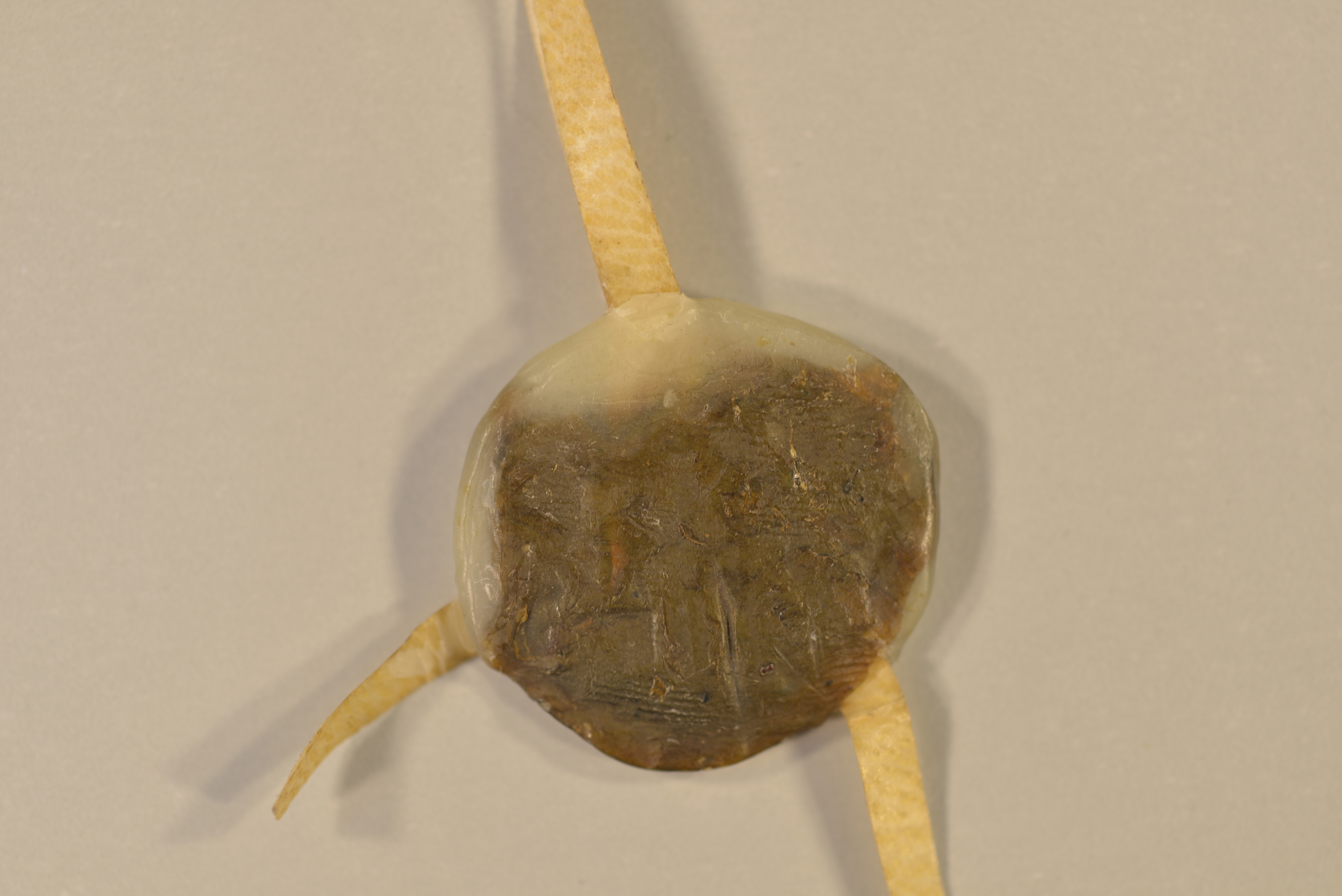 Siegelbeschreibung: Äbtissin Maria Schmitz, Braunes Rundsiegel, Siegelpressel, Plica, Durchmesser: 2,5 cm