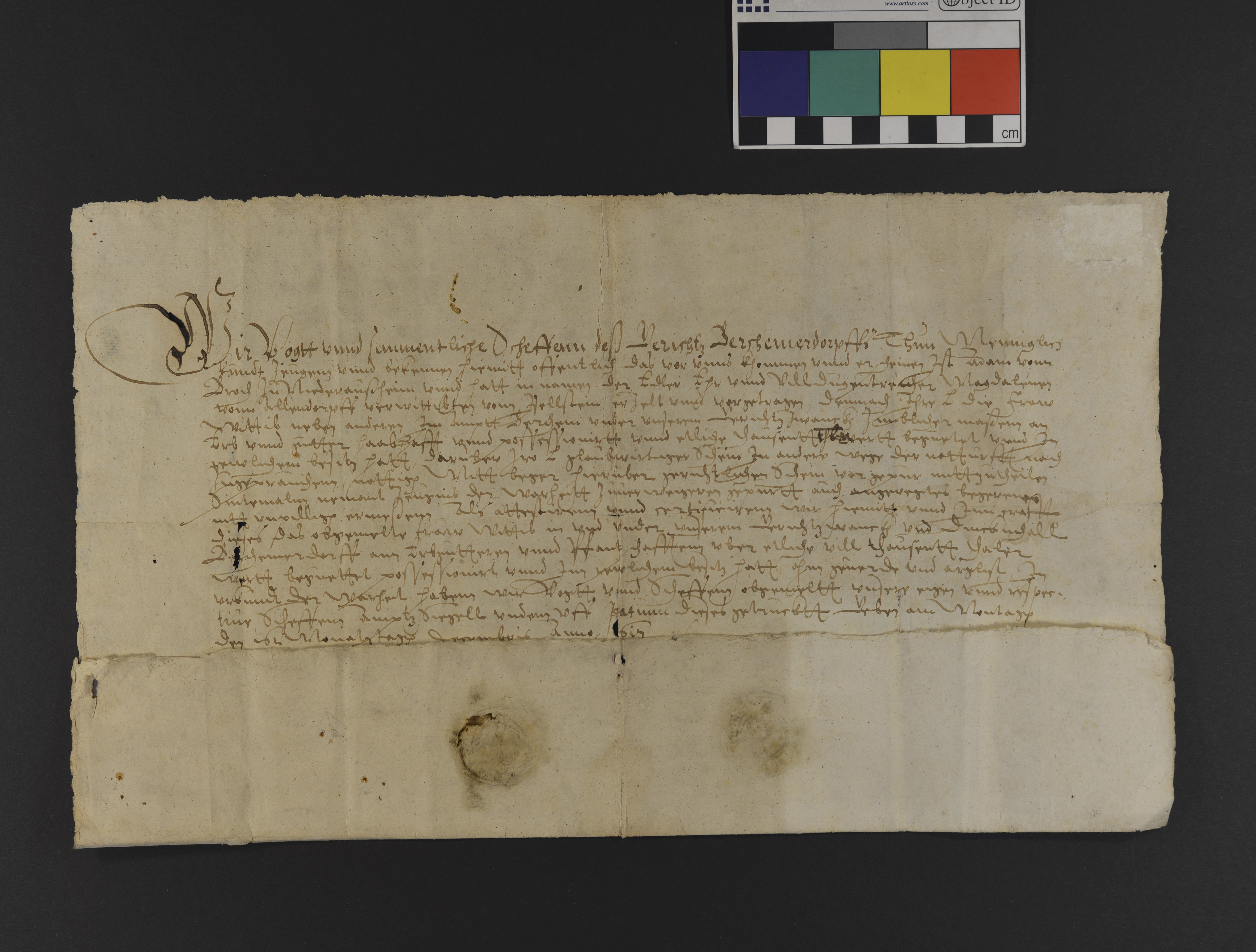 Siegelbeschreibung: Vogt von Bergheimersdorf, 2 gedrückte Siegel in der Plica