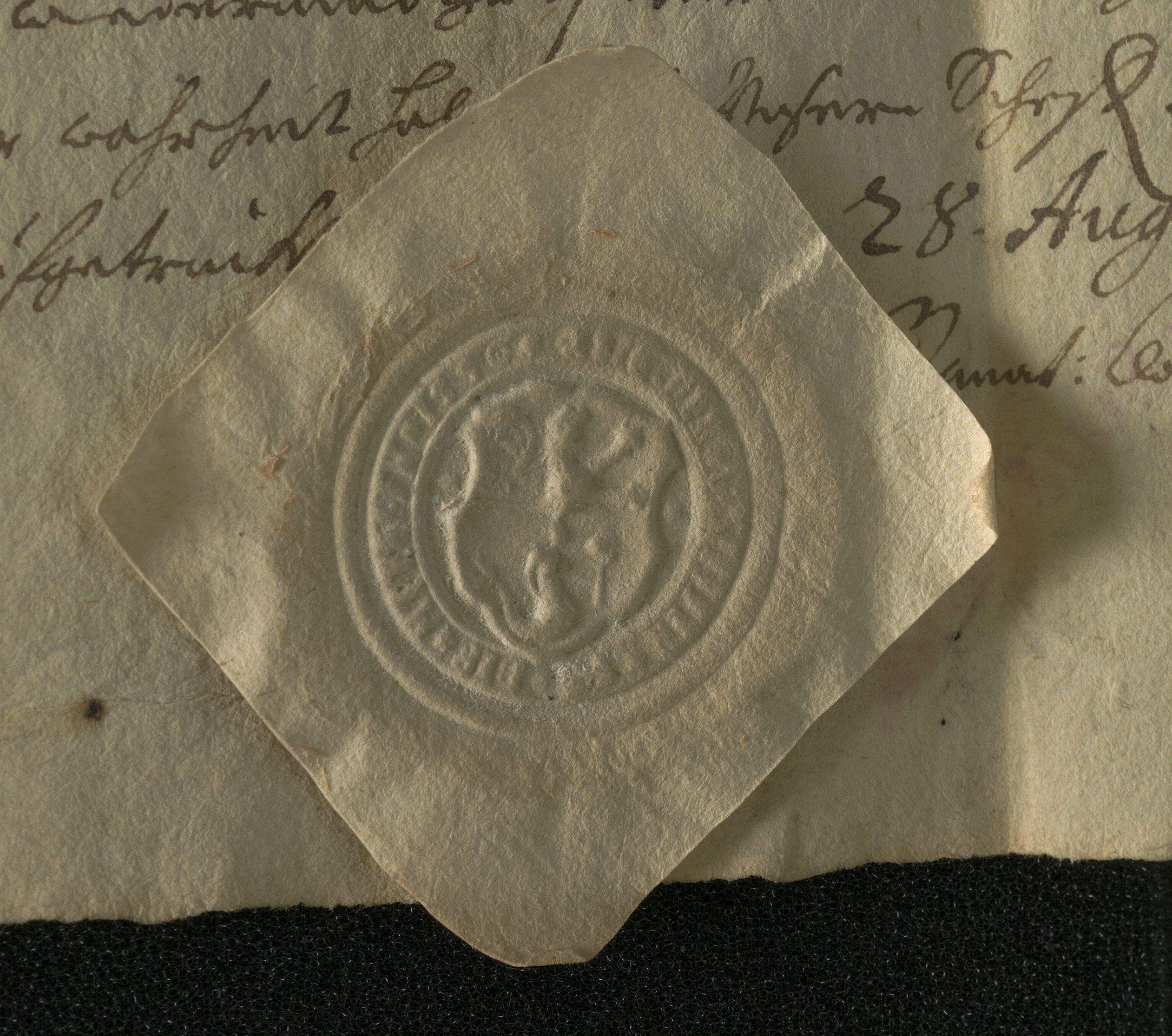 | Schöffen von Mersch, Aufgedrucktes Siegel (Durchmesser: 3,2 cm) mit rhombischen Siegelschutz |