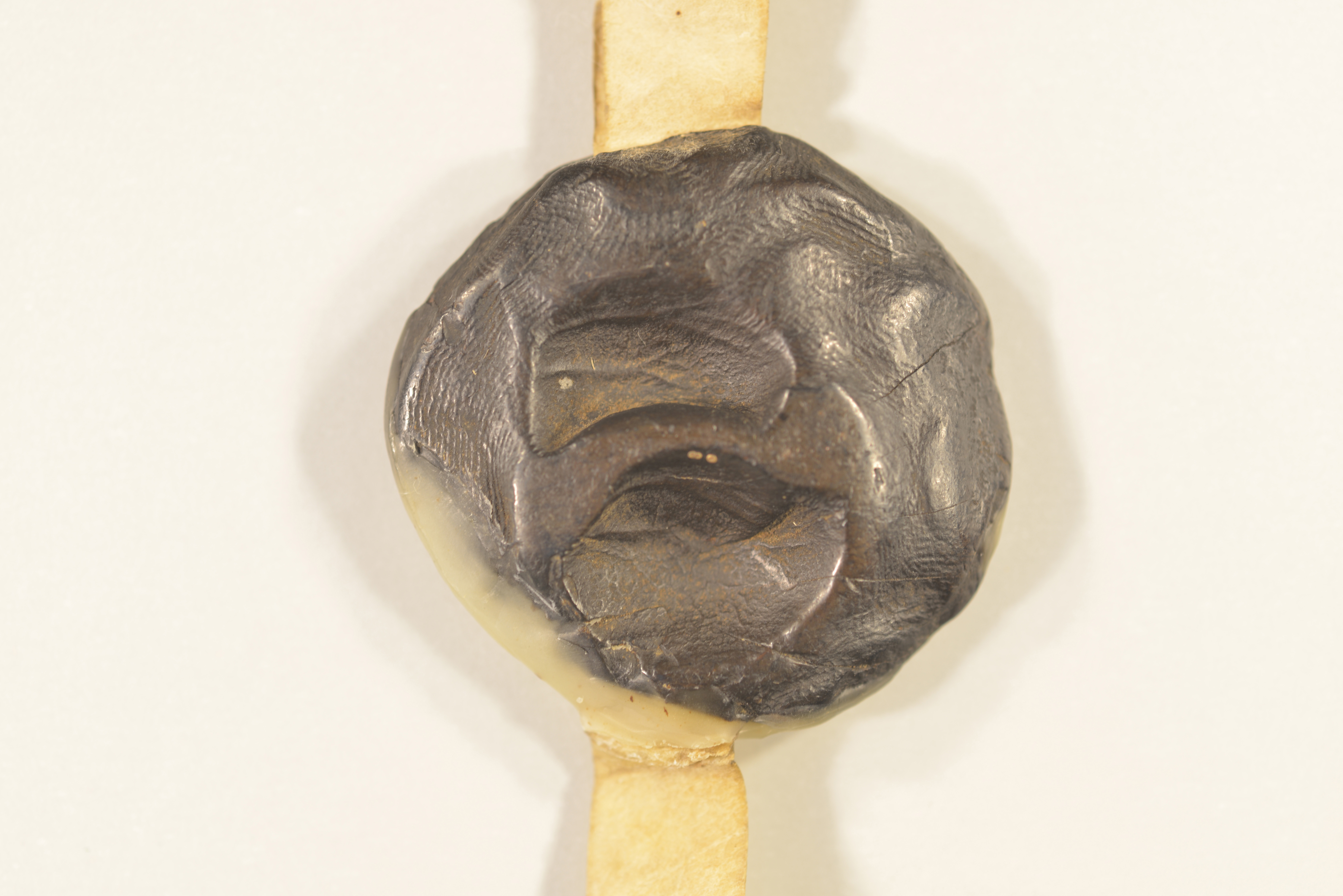 Siegelbeschreibung: Schöffen von Jülich, Rundsiegel an Siegelpressel, Plica, Durchmesser: 4,8 cm, gebrochen, Fragment erhalten, restauriert