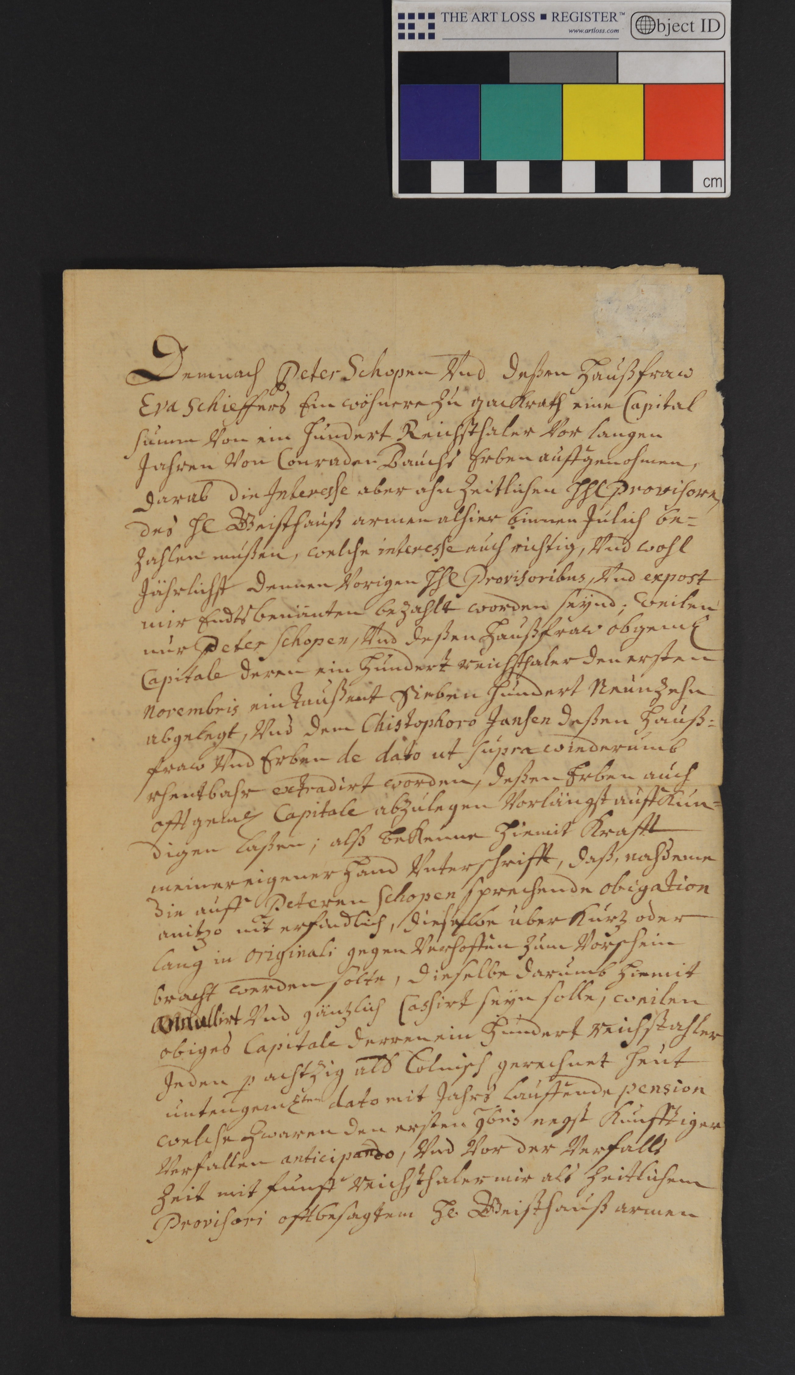 | Vogt Proff, Prov. des h. Geisthauses, bescheinigt, dass von dem Jülicher Bürger Philippus Glassmecher und seiner Gattin als Erben des Christophorus Jansen, der vom h. Geisthause am 1. Nov. 1719 ein Capital von 100 Rth., den Rth. zu 80 cöln. Albus gerechnet, das bis dahin in Händen des Peter Schopen und seiner Gattin Eva Schieffers, wohnhaft zu Gackrath (Garath), war, entliehen hat, zurückgezahlt worden sei. |